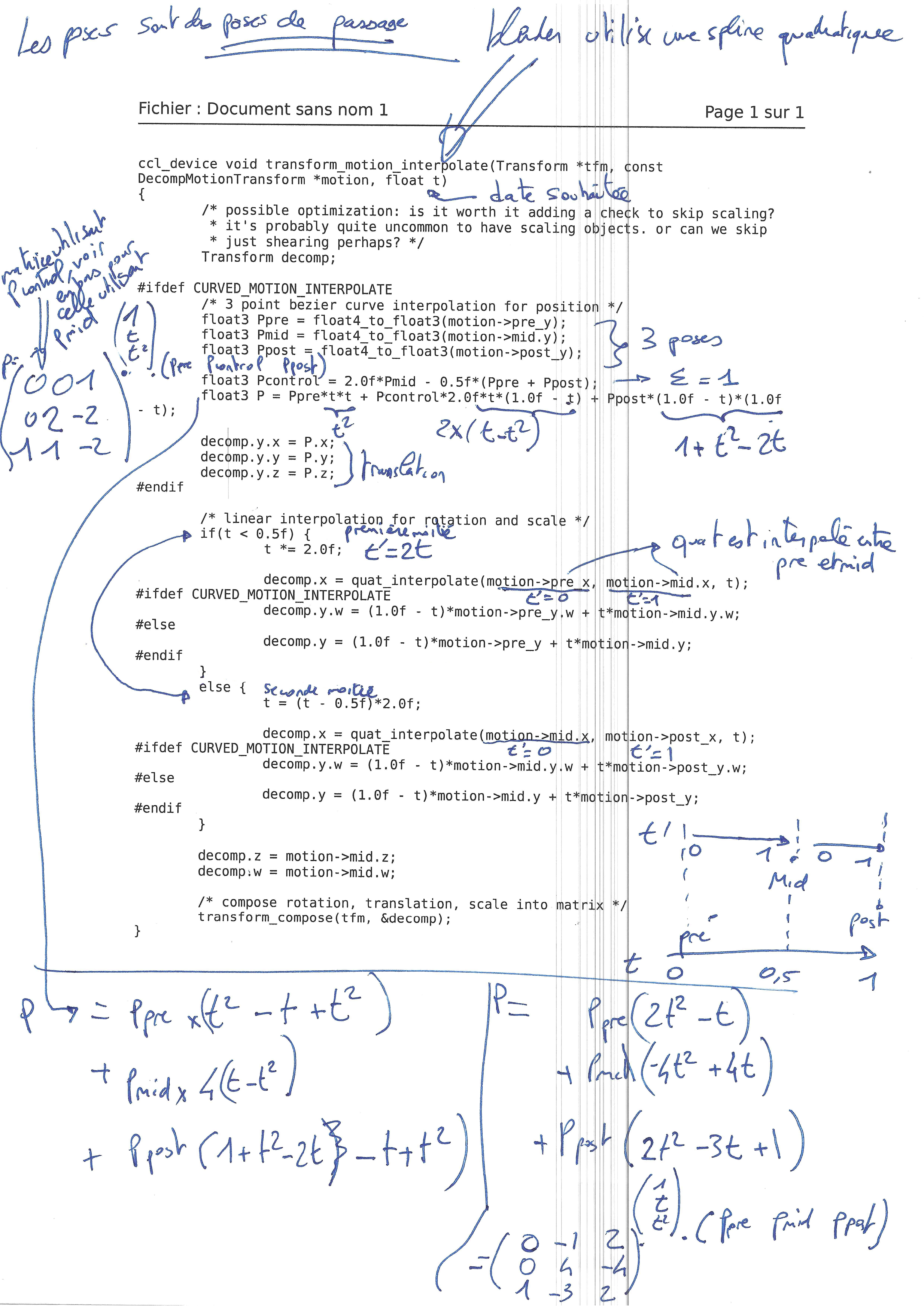 L'interpolation de pose est réalisée par la fonction transform_motion_interpolate dans intern/cycles/util/util_transform.h (l410)