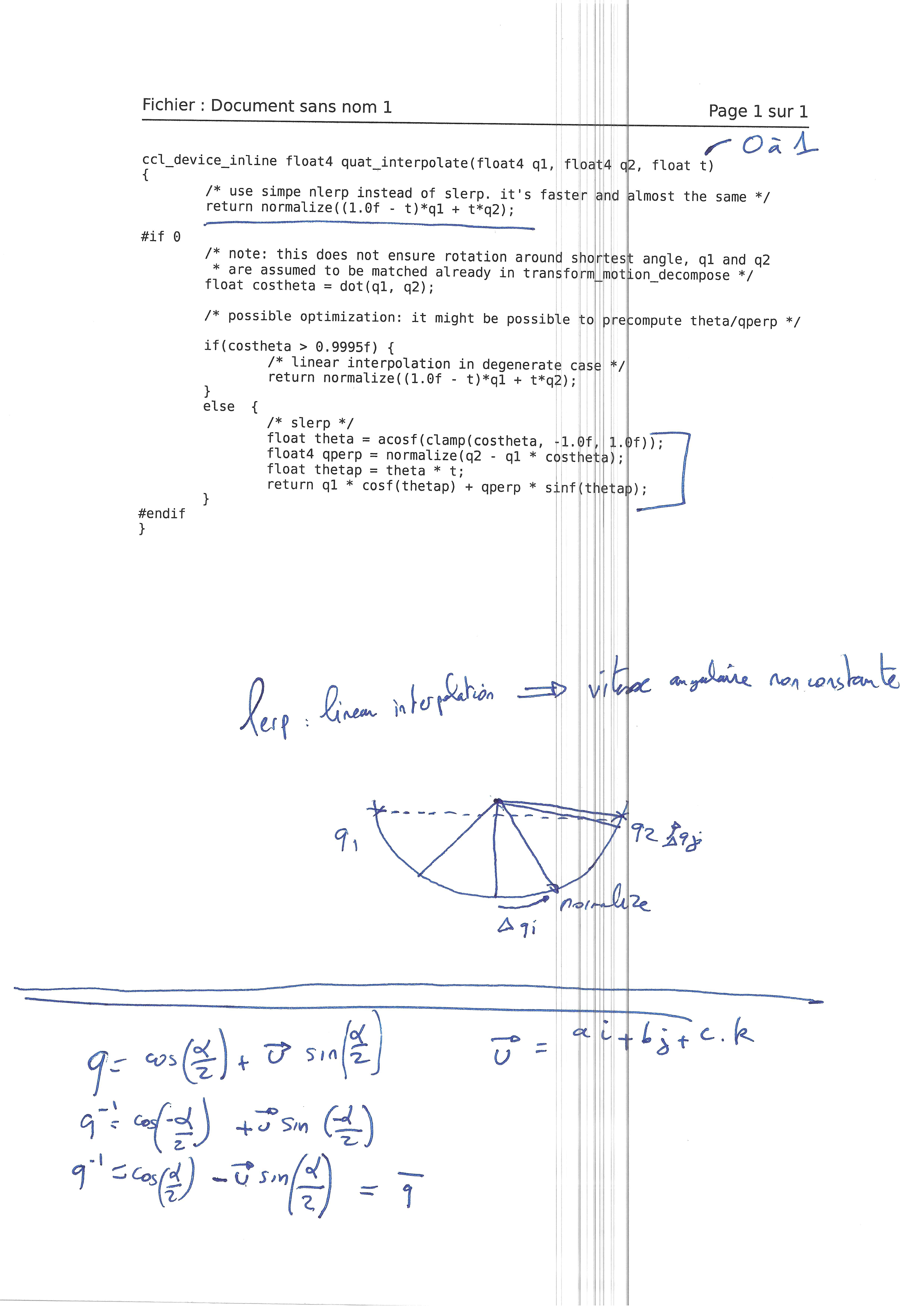 Pour l'interpolation des quaternions, elle utilise: