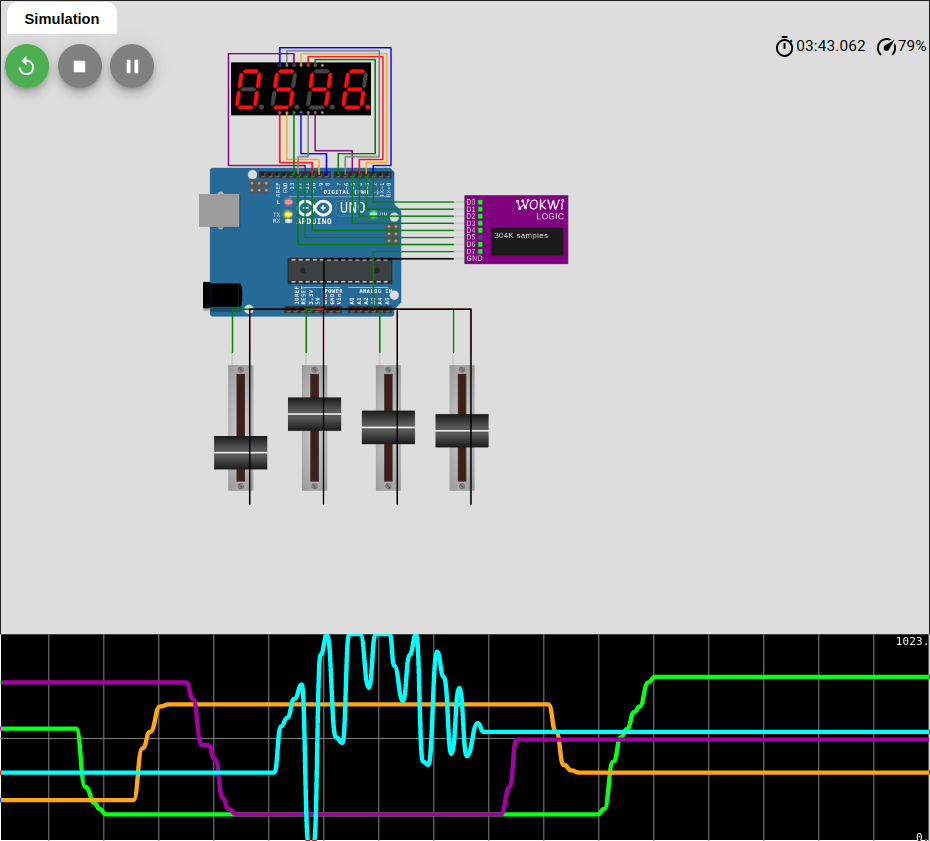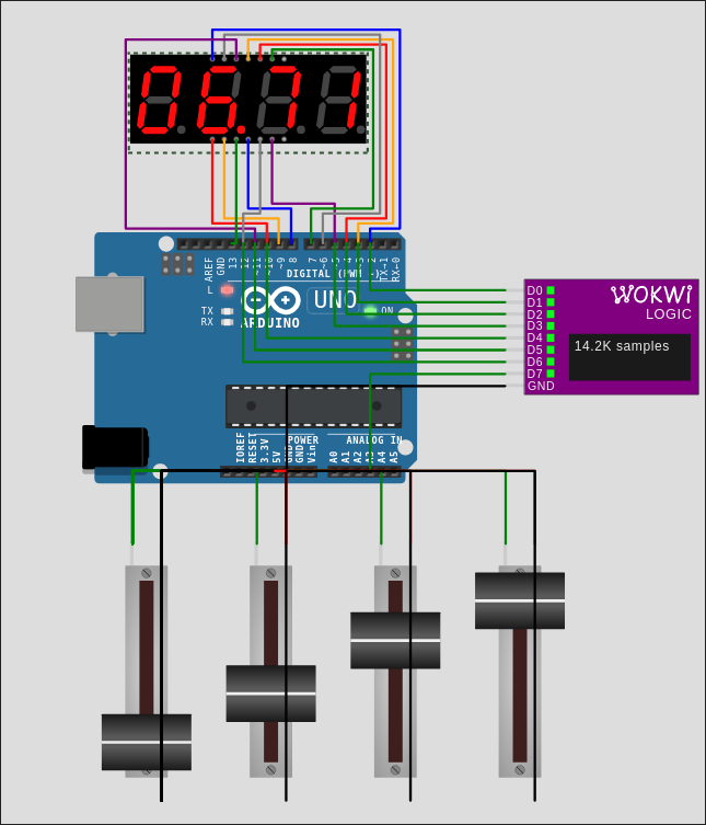 Lire la documentation du composant afficheur 7 segments multiplexé à 4 chiffres: https://docs.wokwi.com/parts/wokwi-7segment