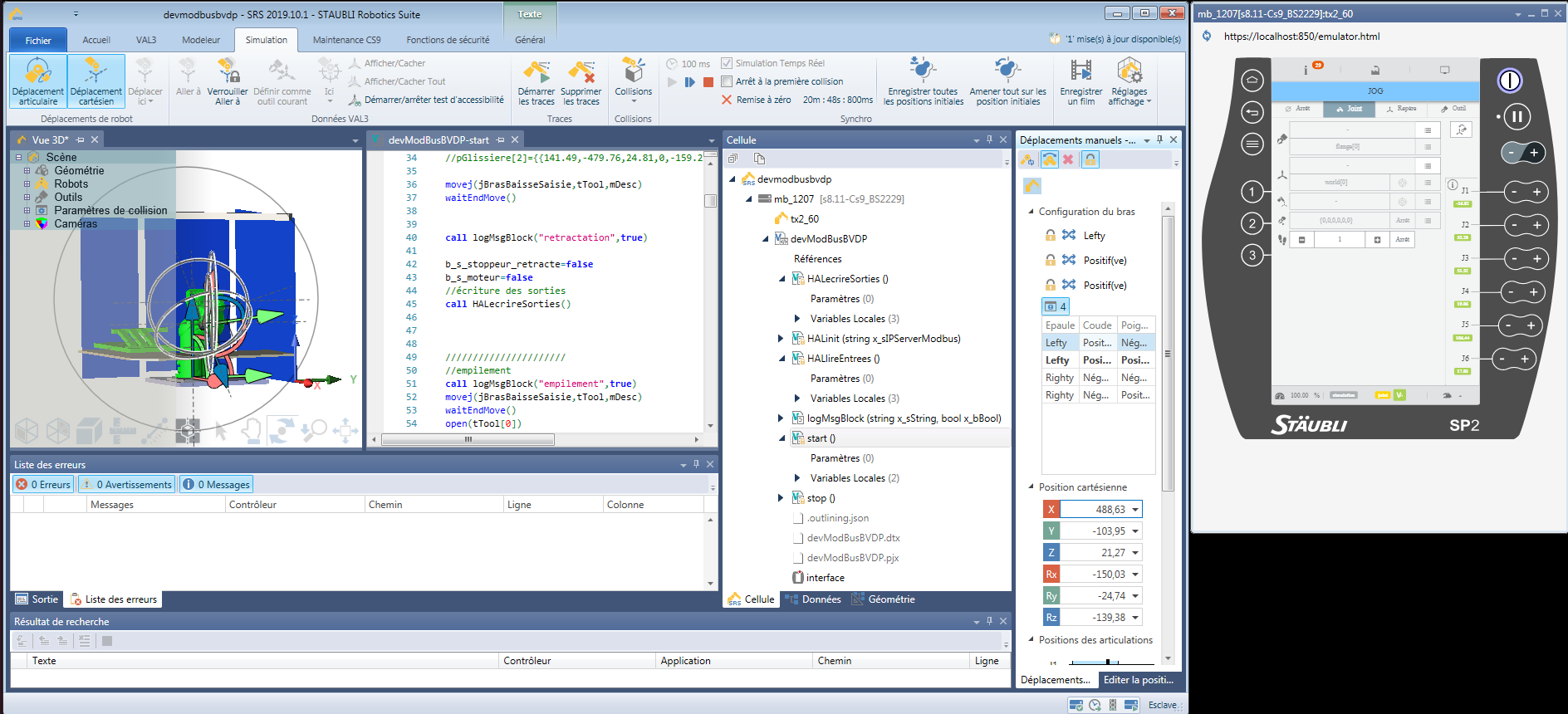 Dans l'Onglet VAL3, cliquer sur Vérifier la syntaxe (F6) et vérifier la présence d'erreurs de syntaxe affichées dans la fenêtre Liste des erreurs. Les corriger si besoin et itérer.