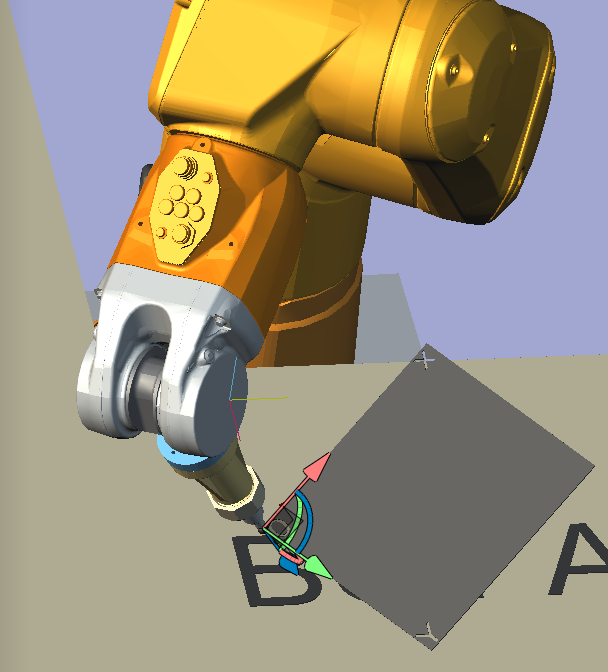 Vous noterez que le handle qui vient d'être configuré correspond au handler de la pince lorsque celle ci vient saisir la pièce, avec l'axe z vers le bas.