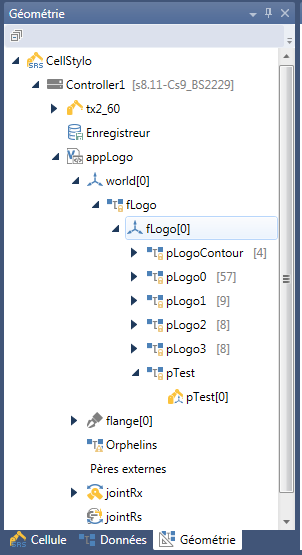 Contient une arborescence: Cellule→controller(s)→robots→application(s)→programmes→paramètres et variables locales