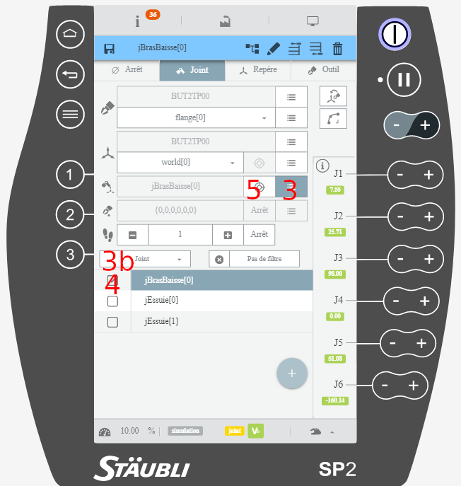Cliquer ensuite sur 3, sélectionner Joint en 3b puis sur le joint à apprendre en 4, puis sur 5 et finalement sur Ok dans la fenêtre qui s'ouvre si la position convient: