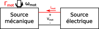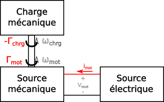 Pour simplifier l'analyse, nous pouvons fixer des grandeur physiques. La tension peut suivant être considérée comme fixe pour une source électrique. La vitesse nominal d'un moteur est aussi suivant fixée. Cela est répresenté par la figure ci-dessous :