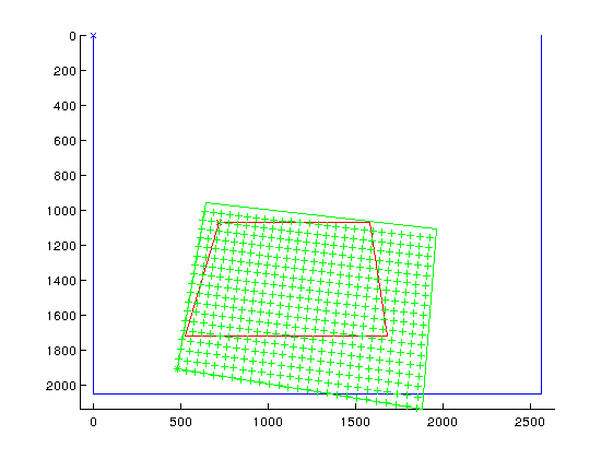 %B. Vandeportaële & D. Maestro 2017 close all clear all %symbolic or numeric simulation symbolic=1 %size of the mirror in x mirrorwidth=100; %size of the mirror in y mirrorheigth=130; if exist('symbolic','var') tcx=sym('tcx','real'); tcy=sym('tcy','real'); tcz=sym('tcz','real'); rcx=sym('rcx','real'); rcy=sym('rcy','real'); rcz=sym('rcz','real'); rc=[rcx,rcy,rcz]'; else tcx= 190; tcy= 85; tcz=200; %rc=[0,1,0]'*110*pi/180; %rc=[0,1,0]'*110*pi/180; %set the rotation matrix from axis correspondances Rapprox=[0 0.7 -0.7;1 0 0; 0,-0.7 -0.7]; det(Rapprox) [U,S,V] =svd(Rapprox) R=U*V' rr=rodrigues(R) rrangle=norm(rr) rraxis=rr/rrangle rc=rr end tc=[tcx,tcy,tcz]'; Tmc=[rodrigues2R(rc), tc; 0,0,0,1]; if exist('symbolic','var') fu=sym('fu','real'); fv=sym('fv','real'); pu=sym('pu','real'); pv=sym('pv','real'); else camera_image_width=2560; camera_image_height=2048; pu=camera_image_width/2; pv=camera_image_height/2; horizontal_fov=70*pi/180; vertical_fov=60*pi/180; fu=(camera_image_width/2)/tan(horizontal_fov/2); fv=(camera_image_height/2)/tan(vertical_fov/2); end K=[fu 0 pu 0; 0 fu pv 0; 0 0 1 0]; if ~exist('symbolic','var') mirror_corners=[0,0;mirrorwidth,0;mirrorwidth,mirrorheigth;0,mirrorheigth]; mirror_corners_projected=zeros(size(mirror_corners)); for n=1:size(mirror_corners,1) P=[ mirror_corners(n,:),0,1]'; PP=inv(Tmc)*P if (PP(3)<0) display('the point is behind the camera'); end p=K*PP; p=p/p(3); mirror_corners_projected(n,:)=p(1:2)'; end end if exist('symbolic','var') display_pixel_size_x=sym('display_pixel_size_x','real'); display_pixel_size_y=sym('display_pixel_size_y','real'); else camera_image_boundaries=[0,0;camera_image_width,0;camera_image_width,camera_image_height;0,camera_image_height]; display_pixel_size_x=0.205; display_pixel_size_y=0.205; display_pixel_width=2560; display_pixel_height=1800; %metric unit mm display_metric_width=display_pixel_size_x*display_pixel_size_x; display_metric_height=display_pixel_size_y*display_pixel_size_y; end pixel2metric=[display_pixel_size_x 0 0; 0 display_pixel_size_y 0; 0 0 1]; if exist('symbolic','var') tdx=sym('tdx','real'); tdy=sym('tdy','real'); tdz=sym('tdz','real'); rdx=sym('rdx','real'); rdy=sym('rdy','real'); rdz=sym('rdz','real'); rd=[rcx,rcy,rcz]'; else %set the rotation matrix from axis correspondances %close to perfect configuration %Rapprox2=[0 -0.7 -0.7;1 0 0; 0,-0.7 +0.7]; %another configuration with 3 degrees of freedom rotation Rapprox2=[0 -0.7 -0.5;0.7 0.2 0.1; 0,-0.7 +0.9]; [U,S,V] =svd(Rapprox2); R2=U*V'; rr2=rodrigues(R2); rrangle2=norm(rr2); rraxis2=rr2/rrangle2; rd=rr2 tdx=-64; tdy=-220; tdz=530; end % rd=[rdx,rdy,rdz]'; td=[tdx,tdy,tdz]'; Tmd=[rodrigues2R(rd), td; 0,0,0,1]; %Tdm=inv(Tmd); Treflection=[1 0 0 0; 0 1 0 0 ; 0 0 -1 0; 0 0 0 1]; MMM=[1 0 0; 0 1 0; 0 0 0; 0 0 1]; %form P2 to P3 in z=0 plane if ~exist('symbolic','var') display_image_boundaries=[0,0;display_pixel_width,0;display_pixel_width,display_pixel_height;0,display_pixel_height]; display_corners_projected=zeros(size(display_image_boundaries)); for n=1:size(mirror_corners,1) Pd=[ display_image_boundaries(n,:),1]' Pdmetric=pixel2metric*Pd; %PdmetricP3=[Pdmetric(1:2);0;Pdmetric(3)]; %compute location in P3 for z=0 plane PdmetricP3=MMM*Pdmetric; P=Treflection*Tmd*PdmetricP3; PP=inv(Tmc)*P if (PP(3)<0) display('the point is behind the camera'); end p=K*PP; p=p/p(3); display_corners_projected(n,:)=p(1:2)'; end end %%%%%%%%%%%%%%%%%%%%%%%%%%%%%%%%%%%%%%%%%%%%%%%%%%%%%%%%%%%%%%%%%%% %computation of the homography between display and camera taking %into account the reflexion Hcd=K*inv(Tmc)*Treflection*Tmd*MMM*pixel2metric %%%%%%%%%%%%%%%%%%%%%%%%%%%%%%%%%%%%%%%%%%%%%%%%%%%%%%%%%%%%%%%%%%% if exist('symbolic','var') jacobian(reshape(Hcd,9,1),[rd]) end if exist('symbolic','var') jacobian(reshape(Tmd,16,1),[rd]) end if exist('symbolic','var') %what happen if we use Tcm instead of Tmc=> other parameterization tcix=sym('tcix','real'); tciy=sym('tciy','real'); tciz=sym('tciz','real'); rcix=sym('rcix','real'); rciy=sym('rciy','real'); rciz=sym('rciz','real'); rci=[rcix,rciy,rciz]'; tci=[tcix,tciy,tciz]'; Tcm=[rodrigues2R(rci), tci; 0,0,0,1]; Hcd=K*Tcm*Treflection*Tmd*MMM*pixel2metric J= jacobian(reshape(Hcd,9,1),[rd',td',rci',tci']) end %%%%%%%%%%%%%%%%%%%%%%%%%%%%%%%%%%%%%%%%%%%%%%%%%%%%%%%%%%%%%%%%%%% %display %%%%%%%%%%%%%%%%%%%%%%%%%%%%%%%%%%%%%%%%%%%%%%%%%%%%%%%%%%%%%%%%%%% if ~exist('symbolic','var') figure hold on axis equal axis ij display_closed_contour(camera_image_boundaries,'b-','bx') display_closed_contour(mirror_corners_projected,'r-','rx') display_closed_contour(display_corners_projected,'g-','gx') for ud=0:100:display_pixel_width-1 for vd=0:100:display_pixel_height-1 p=Hcd*[ud;vd;1]; p=p/p(3); plot(p(1),p(2),'g+'); end end end