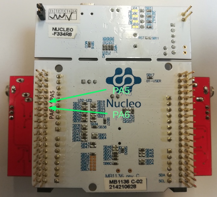 Au verso de la carte, les signaux en sortie directe du DAC sont accessibles sur la broches PA6 (et éventuellement PA5 pour un second signal dans le TP suivant):