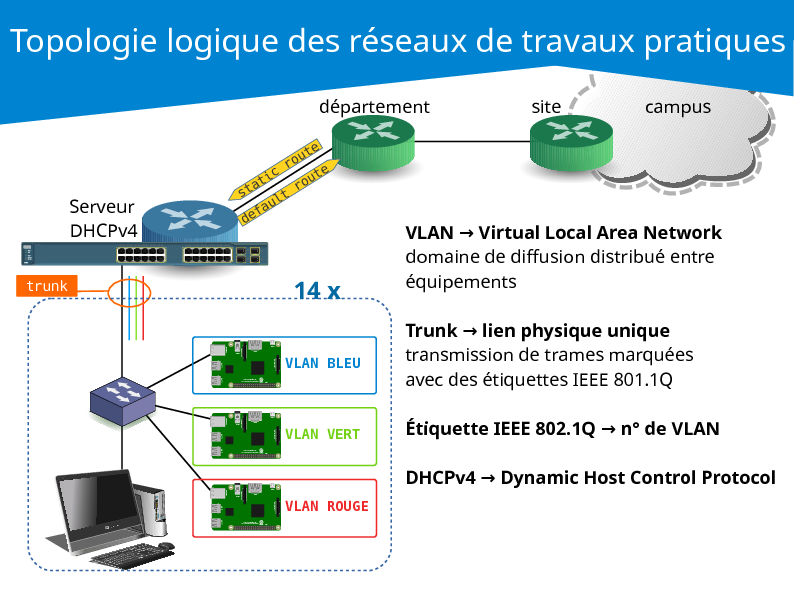 Le réseau utilisé pour faire communiquer les cartes PIC et les PC utilise un VLAN sur le réseau de l'IUT: