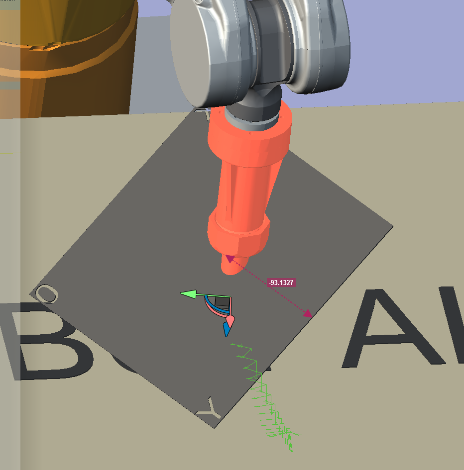Il est possible de faire se déplacer le robot en cartésien en cliquant/déplaçant les axes de son TCP dans la vue 3D.