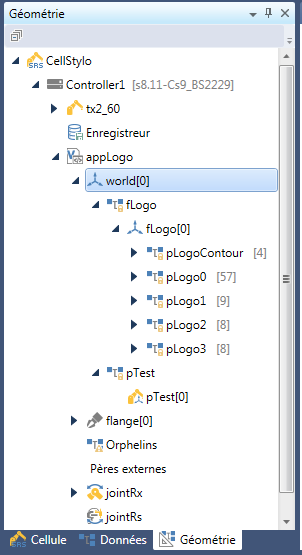 Contient une arborescence: Cellule→controller(s)→robots→application(s)→programmes→paramètres et variables locales