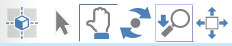 - Icône de rotation caméra (point entouré de 2 flèches). Faire clic hors du cercle pour tourner autour de l'axe de visée de la caméra et clic dans le cercle pour tourner autour des 2 autres axes. (horizontaux et verticaux)