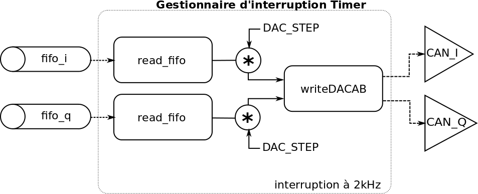 Cette fonction communique avec votre programme à l'aide de deux FIFOs qui permettent de stocker les valeurs pour piloter les canaux I et Q.